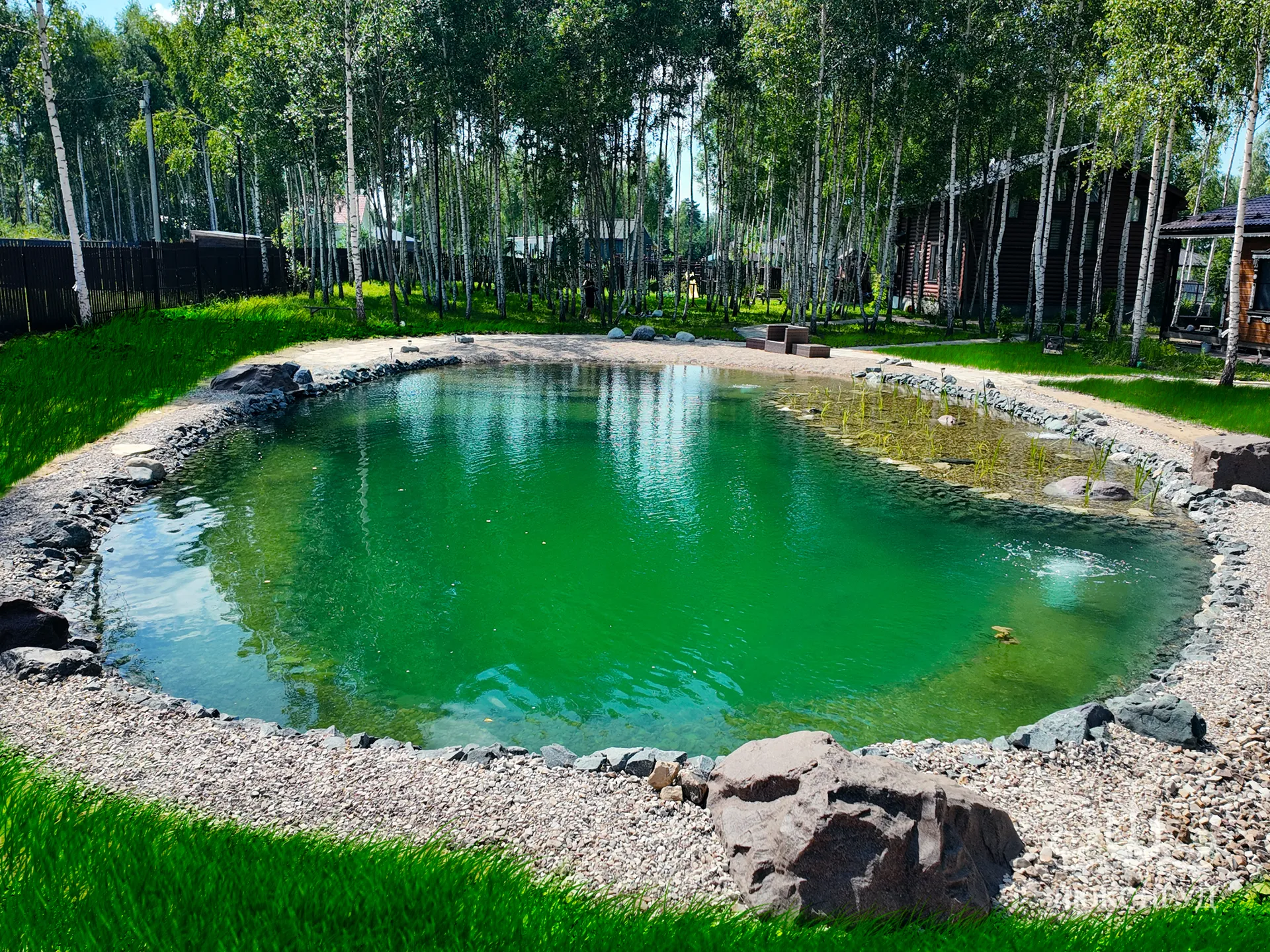 Плавательные пруды — это искусственный водоем, совмещающий функции природного озера и бассейна. В отличие от традиционных бассейнов, он очищается биологическими методами без применения химии и органично вписывается в окружающий ландшафт.