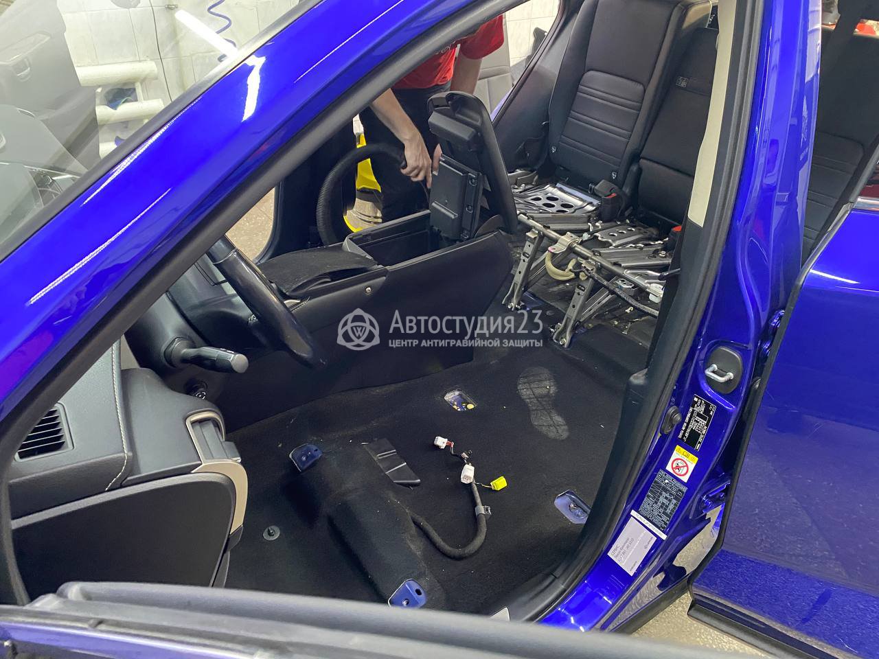 Первый этап — тщательная очистка кузова от грязи, пыли, насекомых и других загрязнений с помощью профессиональных шампуней и моющих средств. Используются специальные средства для безопасного удаления стойких загрязнений.